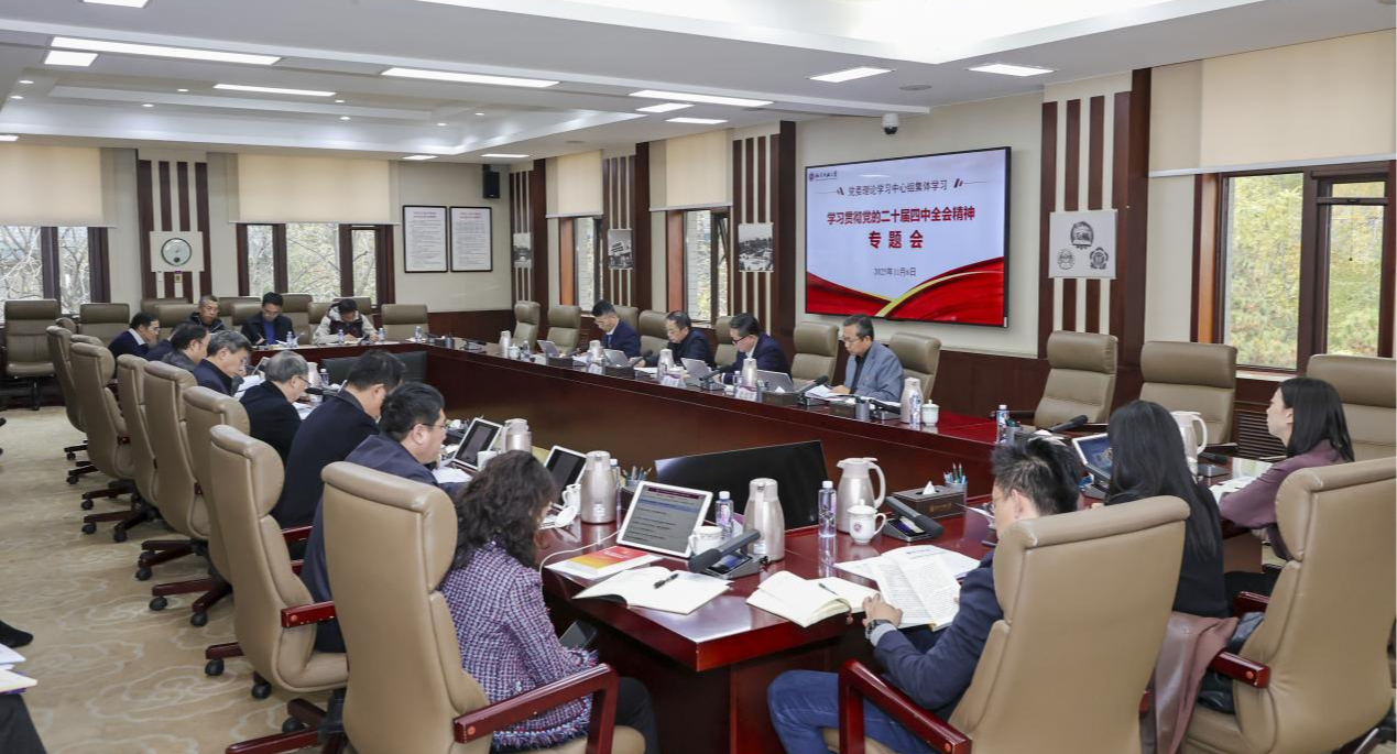 11月6日下午,学校党委理论学习中心组在敦品楼302进行集体学习,专题学习、集中研讨党的二十届四中全会精神,研究部署学校贯彻落实工作。校党委书记刘军主持,校级党委理论学习中心组全体成员参加,市委第十巡视组意识形态工作组成员列席指导。会前,中心组成员自学《中国共产党第二十届中央委员会第四次全体会议公报》《中共中央关于制定国民经济和社会发展第十五个五年规划的建议》和习近平总书记所作的“关于《中共中央关于...