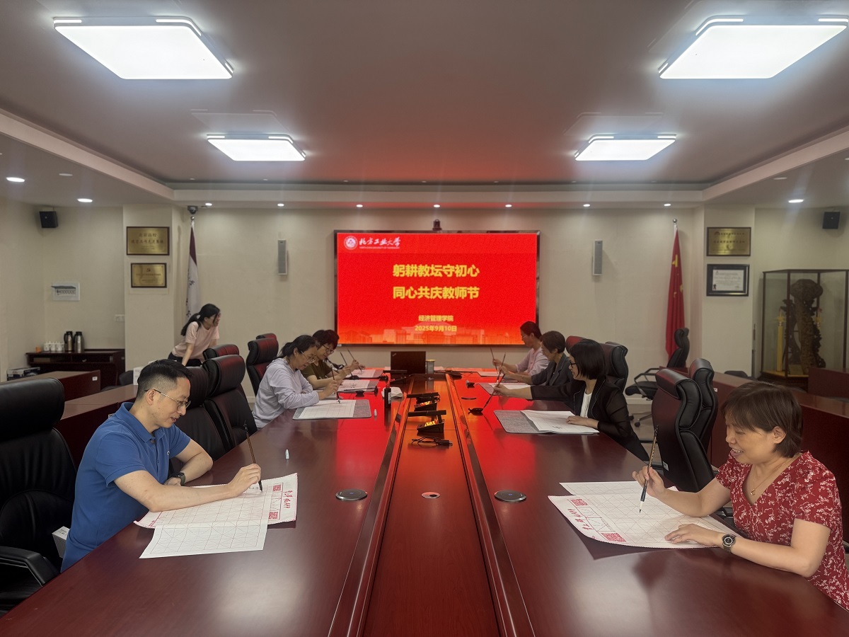 在第41个教师节来临之际,为弘扬尊师重教传统,彰显教师“躬耕教坛、强国有我”的精神风貌,经济管理学院于9月10日下午成功举办“躬耕教坛守初心,同心共庆教师节”主题书法绘画活动,老师们以笔墨寄情,向辛勤的园丁致以节日祝福。活动现场,墨香四溢、气氛热烈。教师们或凝神构思,或挥毫泼墨,将对教育事业的热爱、对学院和学生们的期许融入笔端。楷书工整端庄,似教师教书育人的严谨态度;行书流畅洒脱,如师者春风化雨的育...