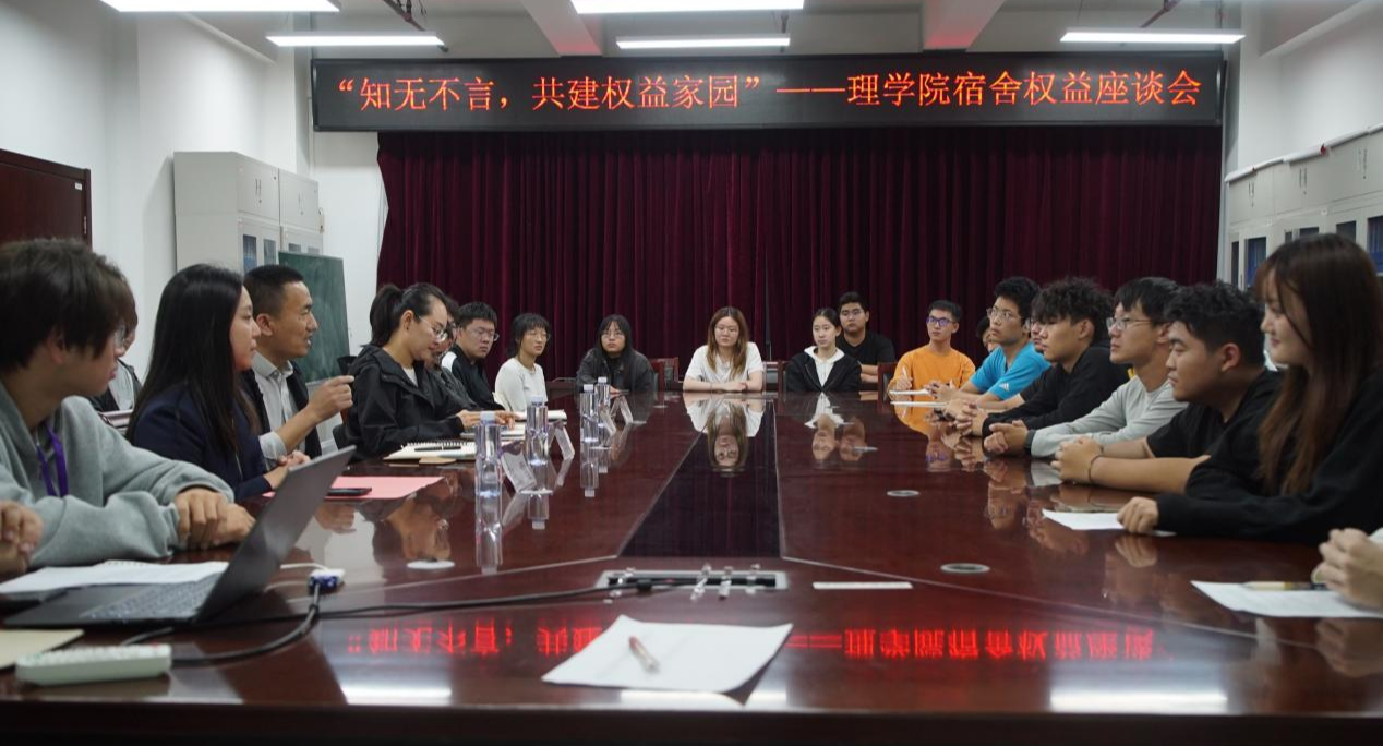 为深化“以生为本”的育人理念,打通宿舍管理服务的“最后一公里”,理学院于10月14日下午在博远楼805举办了“知无不言,共建权益家园”主题宿舍权益座谈会。座谈活动以问题为导向搭建协同沟通平台,推动宿舍管理提质增效。理学院党委副书记贺映勇、团委书记夏丹梅、辅导员熊敏、公寓管理部张雪及全体2025级本科新生宿舍长参会。新生宿舍长聚焦住宿生活关键诉求,围绕设施维护、用电安全、公共服务等核心议题提出意见和建议。针...