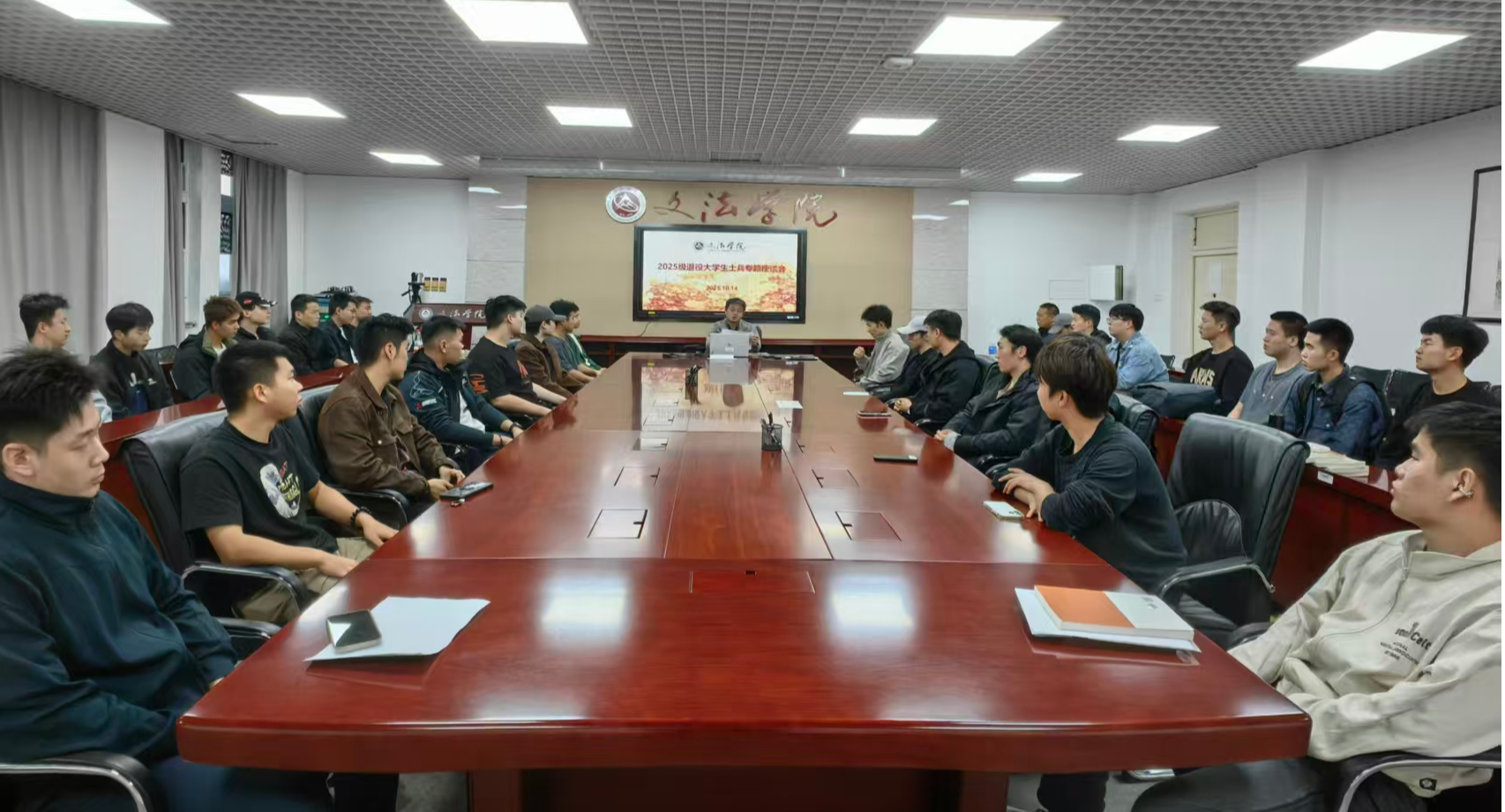 为进一步加强退役大学生士兵思想政治引领,激发退伍学生永葆军人本色、发挥模范作用、增强学习动力,10月14日,文法学院在瀚学楼710召开“退伍不褪色、扬帆再起航”主题座谈会。文法学院党委副书记邝洪波、年级辅导员、2025级全体退役大学生士兵参加,座谈会由邝洪波主持。邝洪波代表学院传达了对同学们的高度重视和殷切关怀。他希望退伍的同学们能够永葆军人本色,要将在部队锤炼出的坚韧不拔、团结协作、勇于担当、攻坚克难的...