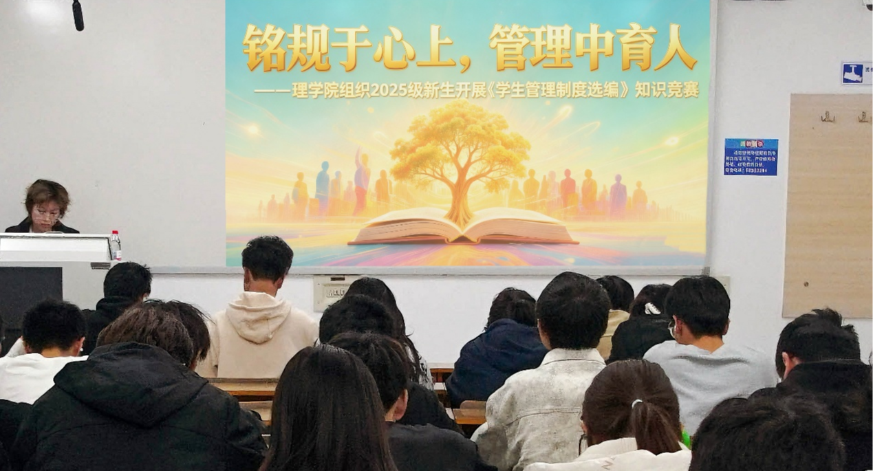 为引导2025级新生筑牢规则意识,赋能自我管理,快速完成角色转变,11月5日,理学院在励学楼组织了面向全体新生的《学生管理制度选编》知识竞赛。本次活动是学院“管理育人”工作的重要环节,旨在通过制度学习,帮助新生将外在规范内化为内在自觉,为实现高效的自我管理、自我服务、自我教育、自我监督奠定坚实基础。竞赛采用闭卷形式,内容全面覆盖学籍、奖惩、宿舍管理、学术规范及安全纪律等章节。学院精心命题,特别强化了与...