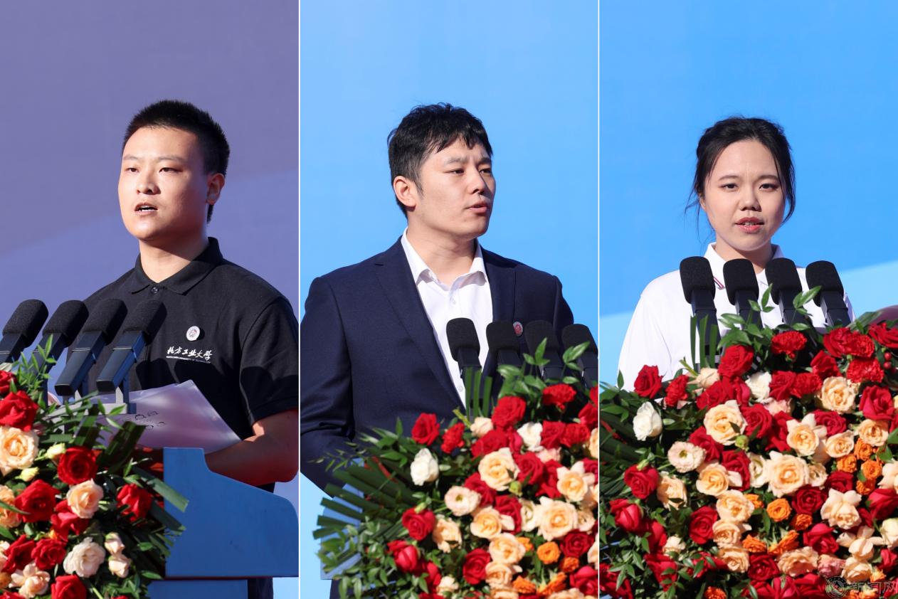 储能科学与工程学院副教授朱思远代表全体教师发言。她表示,大学是一片让同学们自由发问、勇敢探索的原野。希望大家永葆探索的勇气,锻造责任的棱角,修炼清醒的自我,不负韶华,勇敢逐梦。计算机95级校友、北京理工大学特聘教授张华平表达了重返母校的感慨与感激,回顾了在母校学习生活的点点滴滴,希望同学们在校训校风中淬炼品格,坚持创新为国、天下为先、合而为盟、超越为我,在“四为之道”中寻找人生方向,用青春书写属于这一代人的辉煌。