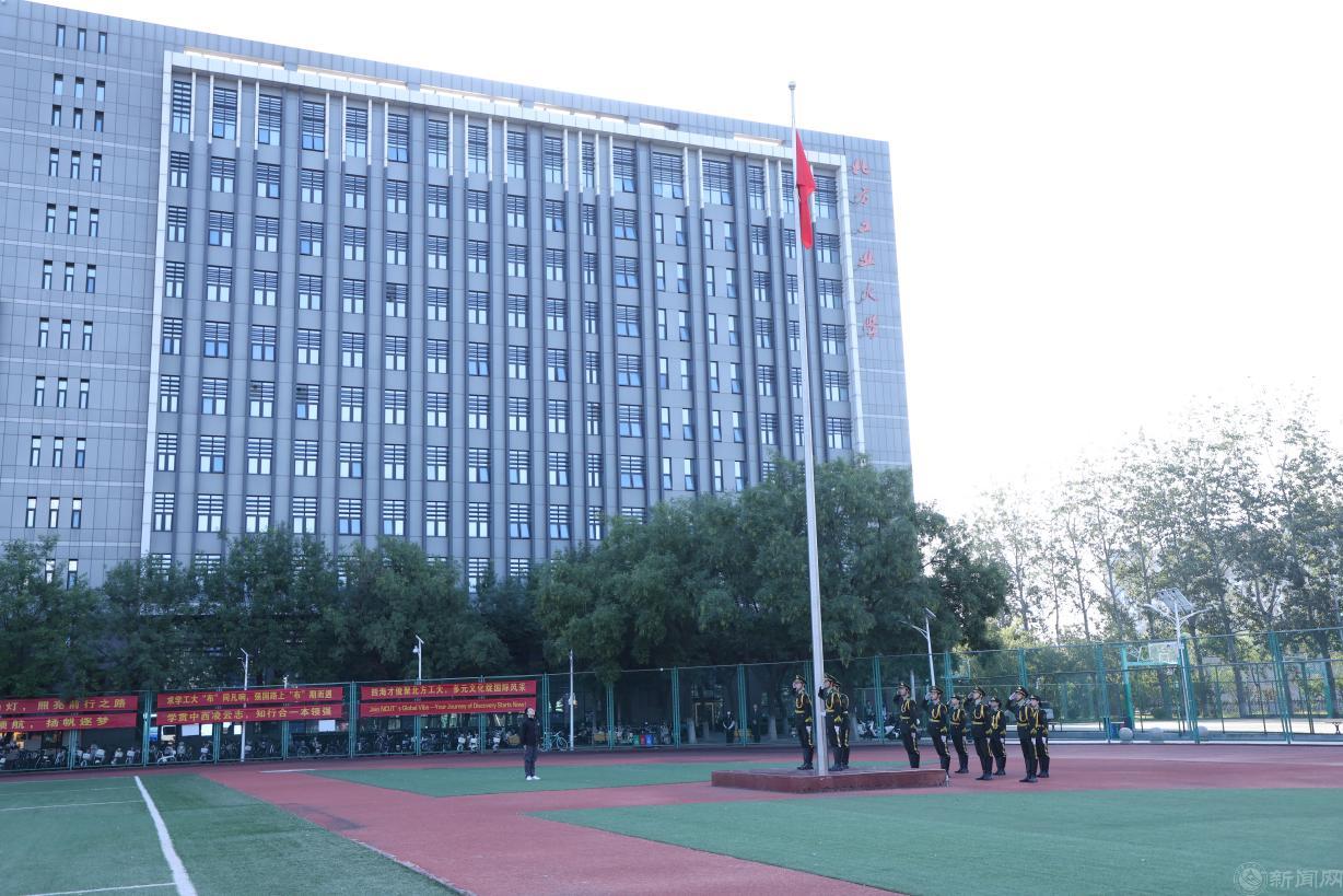 开学典礼在庄严的升国旗仪式中开始,全体师生面向国旗,肃立行礼,齐唱国歌。