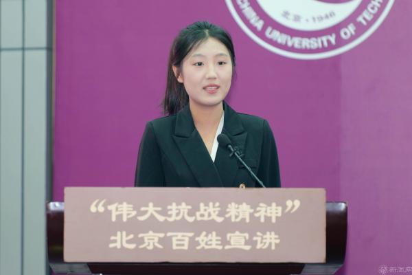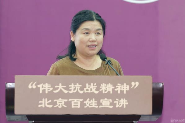 报告会上,北京市房山区委党校刘金玲,中国人民抗日战争纪念馆志愿讲解员林汉京,中央民族大学学生吴怡萱,房山区退休音乐教师邢秀花,北京市西城区第一军休所退休军官、战时一等功荣立者王曙光6位宣讲员,分别以《红色马安的“两面锦旗”》《吉鸿昌,永远的英雄》《“731”,不能忘却的烙印》《在歌声中讲述党史》《磨刀声声铸脊梁》《永远的军魂》为题,用百姓语言讲英雄史诗,从马安村两面锦旗到吉鸿昌就义诗,从731遗址控诉到抗战旋律重温,从磨刀老人坚守到伤残老兵冲锋,一个个故事映现中国共产党中流砥柱的担当,映现山河不屈、人民不屈的脊梁,更化作奋进动力,激励学校师生把抗战精神写进强国建设的新征程。