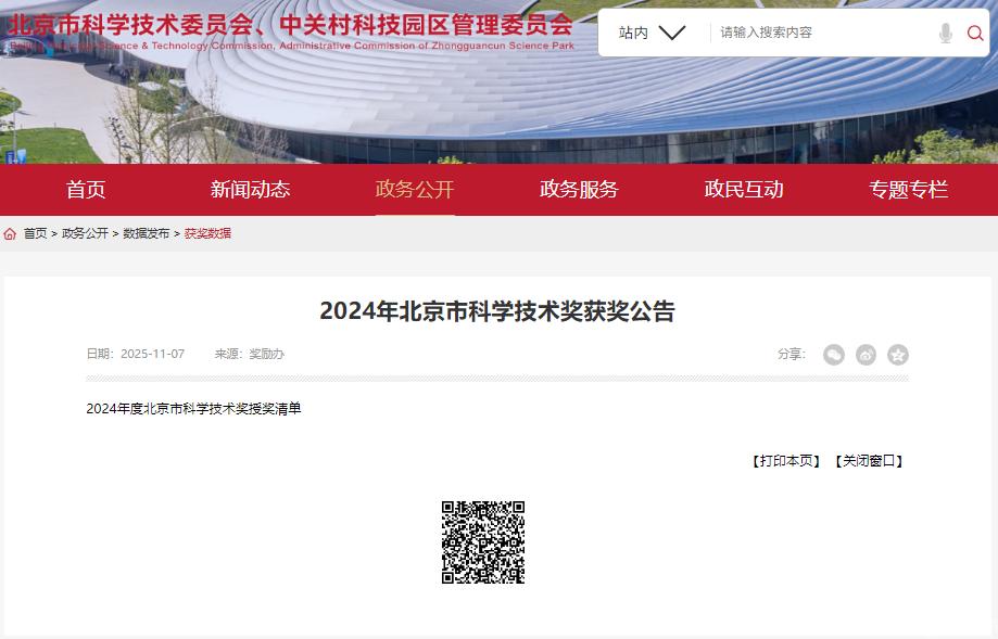 近日,北京市科学技术委员会公布了2024年北京市科学技术委员会科学技术奖获奖名单,365官网在此次评选中喜获3项奖励。