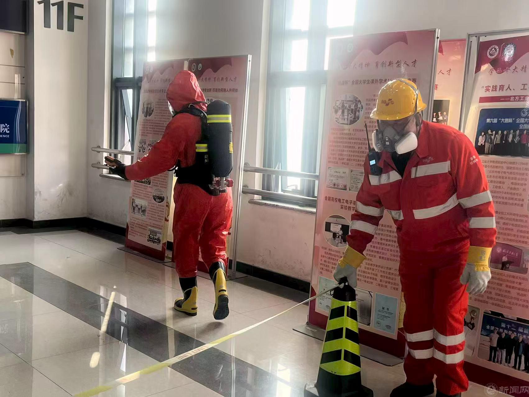 模拟场景设定为集成电路学院某实验室因操作不当导致危险废物泄漏,引发突发环境事件和火灾事故。接到报警后,学校立即启动应急预案,资产与实验室安全管理处、相关学院迅速响应,按照预案分工,展开应急处置工作。活动中,北京金隅红树林环保技术有限责任公司负责人详细讲解了有关实验室试剂泄露的紧急应对措施,强调了迅速识别泄漏源、有效隔离泄漏区域、以及采取适当个人防护措施的重要性。