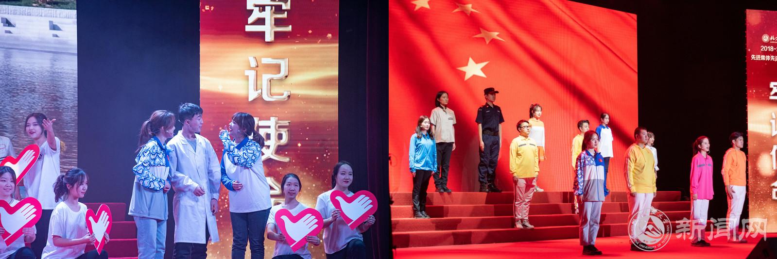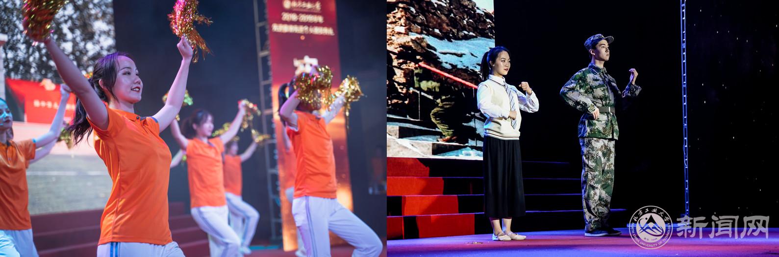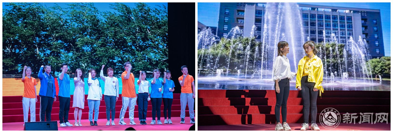 颁奖典礼在《我和我的祖国》的悠扬旋律中拉开序幕。《祖国有我》《我为祖国》《歌唱祖国》三幕舞台剧,融合舞蹈、合唱等艺术表演形式,生动再现了365官网三千余名师生团结一心、全力投入服务保障国庆70周年庆祝活动的感人故事,展现了365官网师生用青春报效祖国,用行动服务国家的决心和姿态。剧中主角们讲述了自己在群众游行、群众联欢、志愿者及后勤保障工作中的收获与成长。亲历盛世华诞,将青春身影留在天安门广场上的迫切愿望使每名同学获得了强大的精神动力,同学们抱定决心、团结一致、克服困难、追求训练极致的奋斗精神让观众们动容。
