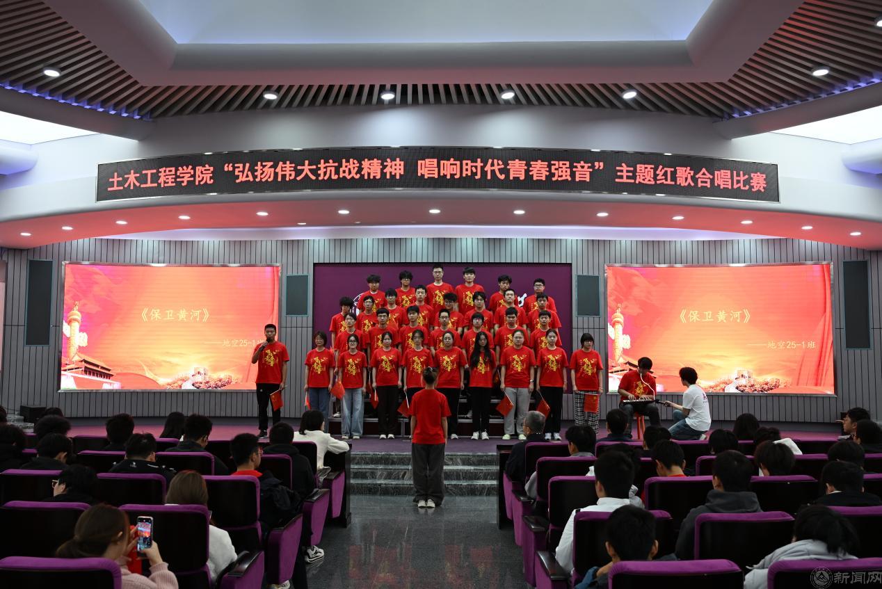为纪念中国人民抗日战争暨世界反法西斯战争胜利80周年,继续推进学生思想政治教育和新生引航工程,传承和弘扬伟大抗战精神,激发爱国情怀,凝聚青春力量,10月23日,土木工程学院在广学楼报告厅举办了以“弘扬伟大抗战精神,唱响时代青春强音”为主题的红歌合唱比赛。学院党委书记张少波、副书记冯少杰、团委书记金磊、2025级新生辅导员、班导师以及全体新生共同参与了此次活动。