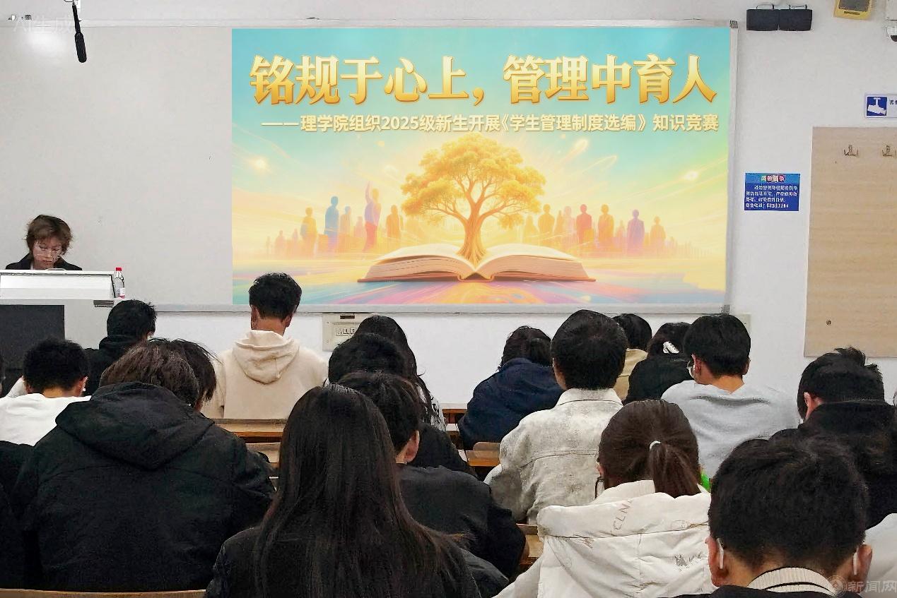 为引导2025级新生筑牢规则意识,赋能自我管理,快速完成角色转变,11月5日,理学院在励学楼组织了面向全体新生的《学生管理制度选编》知识竞赛。本次活动是学院“管理育人”工作的重要环节,旨在通过制度学习,帮助新生将外在规范内化为内在自觉,为实现高效的自我管理、自我服务、自我教育、自我监督奠定坚实基础。
